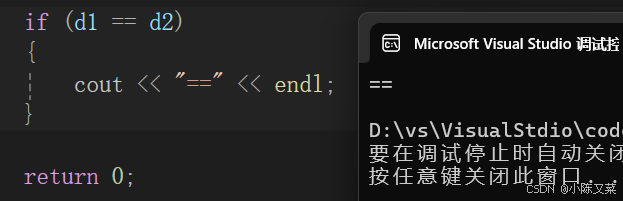 我们正常的想法,不就是通过运算符==来比较两个变量的大小嘛,那么上面的代码能不能正常运行呢?