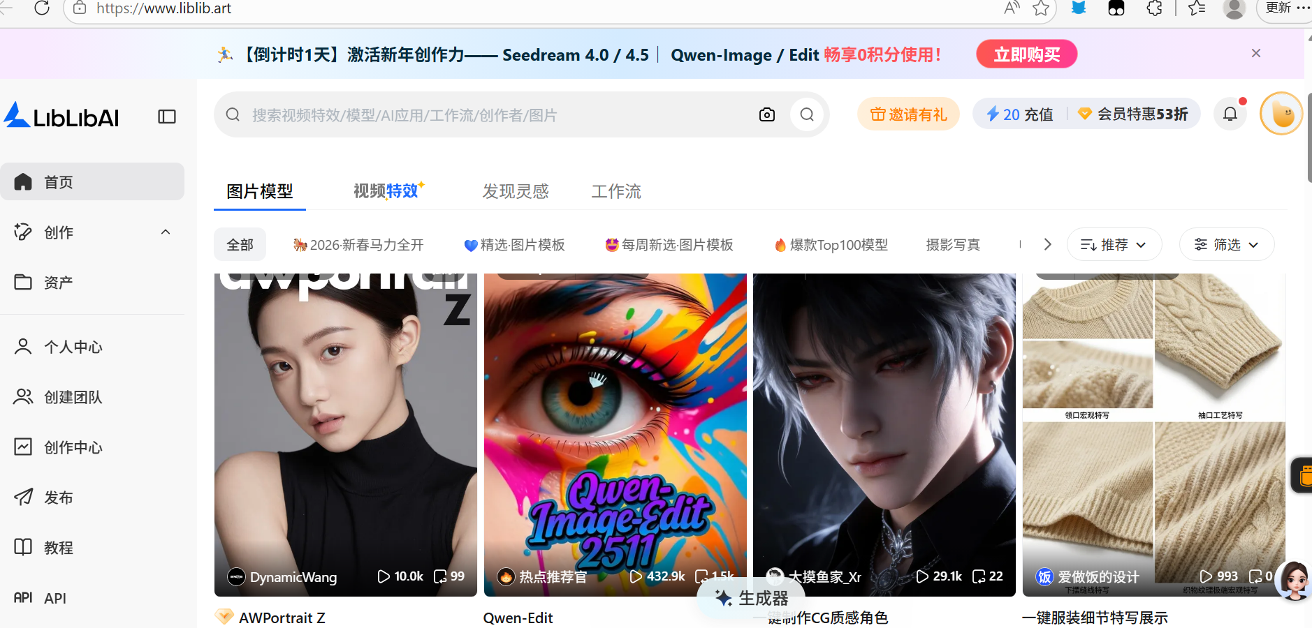 LibLib 是国内的大模型分享平台,无需科学上网即可访问。