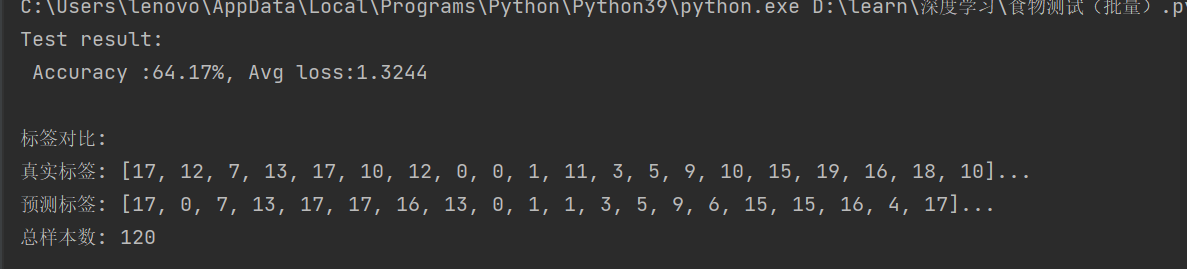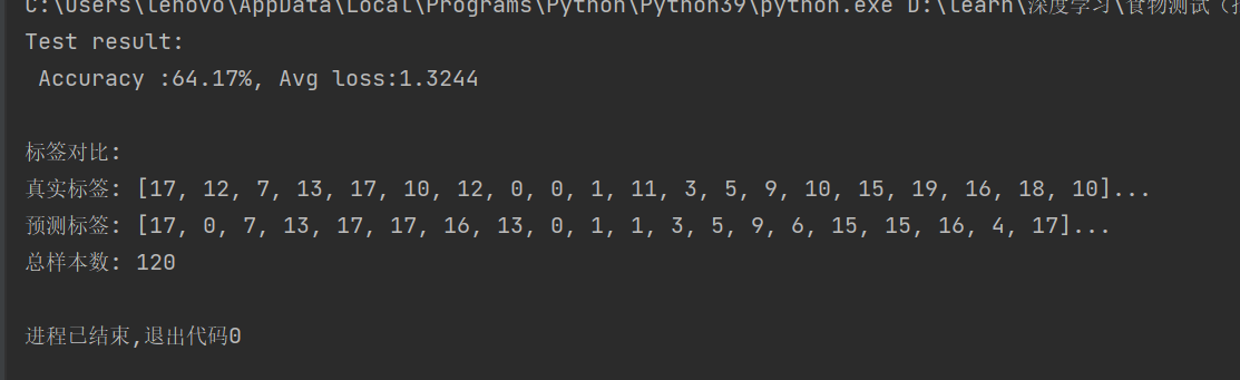测试函数就需要修改一下,为了我们之后运行能对比测试结果和真实结果我们定义两个列表用来分别存真是标签和预测标签,然后再加一些输出,就修改这些。