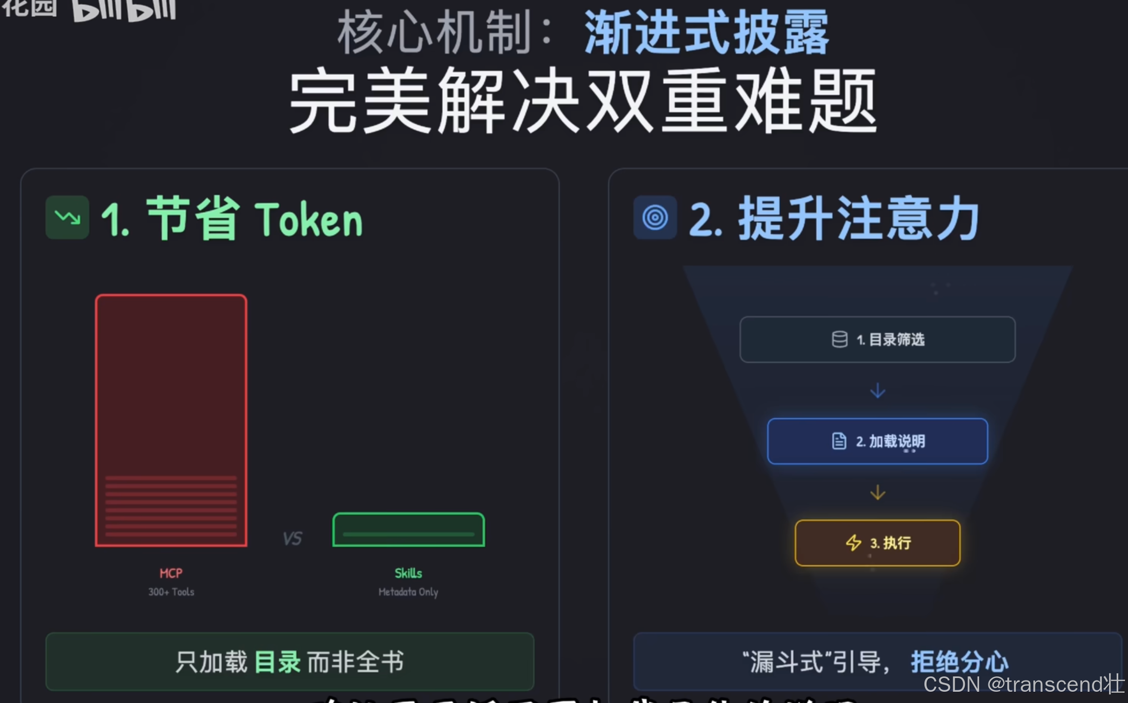 - 成本优化:渐进式加载大幅降低 token 消耗