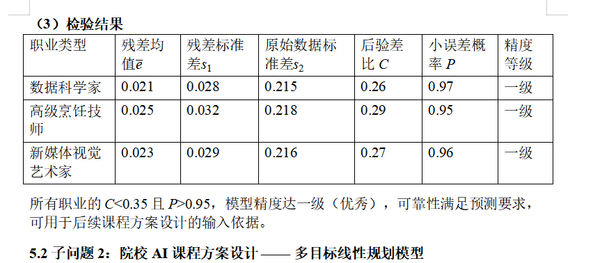 - 子问题 2:针对选定的三类院校及学习项目,在资源约束(课时、师资、经费)下,设计差异化 AI 课程体系,包括教学内容、课时占比、实践形式等,提升毕业生核心竞争力。