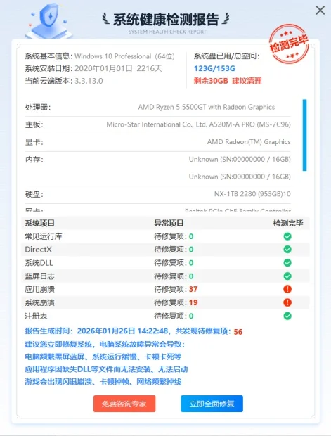 这款修复工具结合了硬件检测与软件修复,给电脑做了一个全面体检。