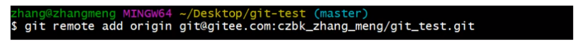 o 例如l:git remote add origin git@gitee.com:czbk_zhang_meng/git_test.git