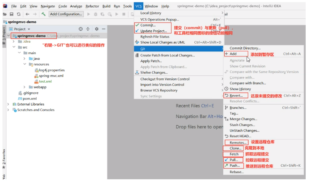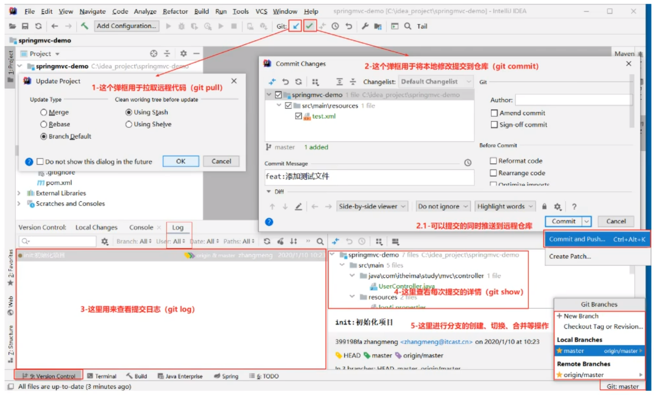 命令:git push [-f] [--set-upstream] [远端名称] [本地分支名] [:远端分支名]。