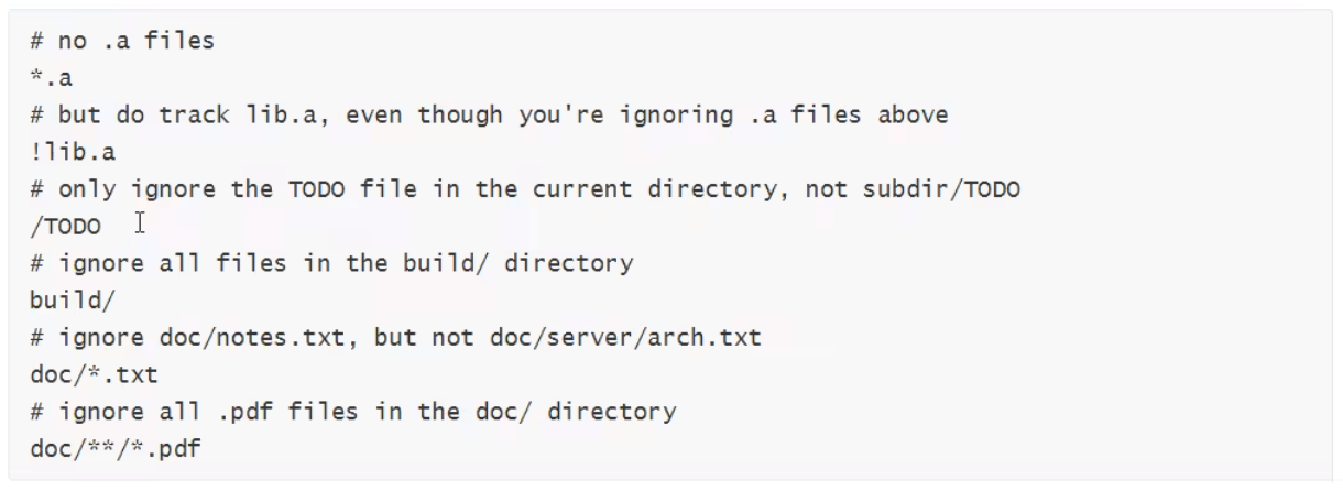 一般我们总会有些文件无需纳入Git 的管理,也不希望它们总出现在未跟踪文件列表。通常都是些自动生成的文件,比如日志文件,或者编译过程中创建的临时文件等。在这种情况下,我们可以在工作目录中创建一个名为.gitignore的文件(文件名称固定),列出要忽略的文件模式。下面是一个示例: