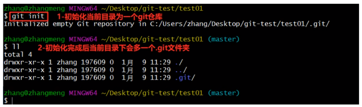 4)如果创建成功后可在文件夹下看到隐藏的.git目录。