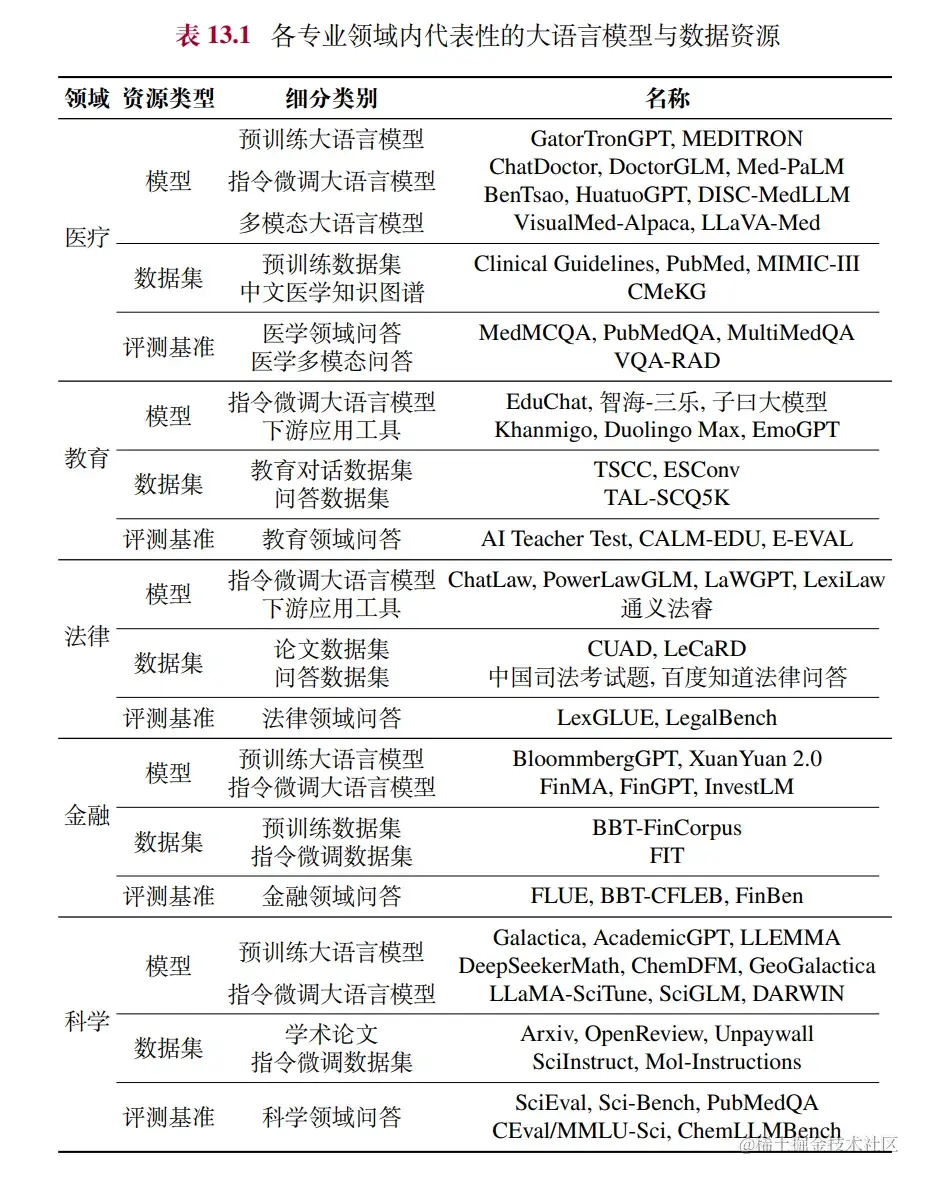 再比如各专业领域内代表性的大语言模型与数据资源。