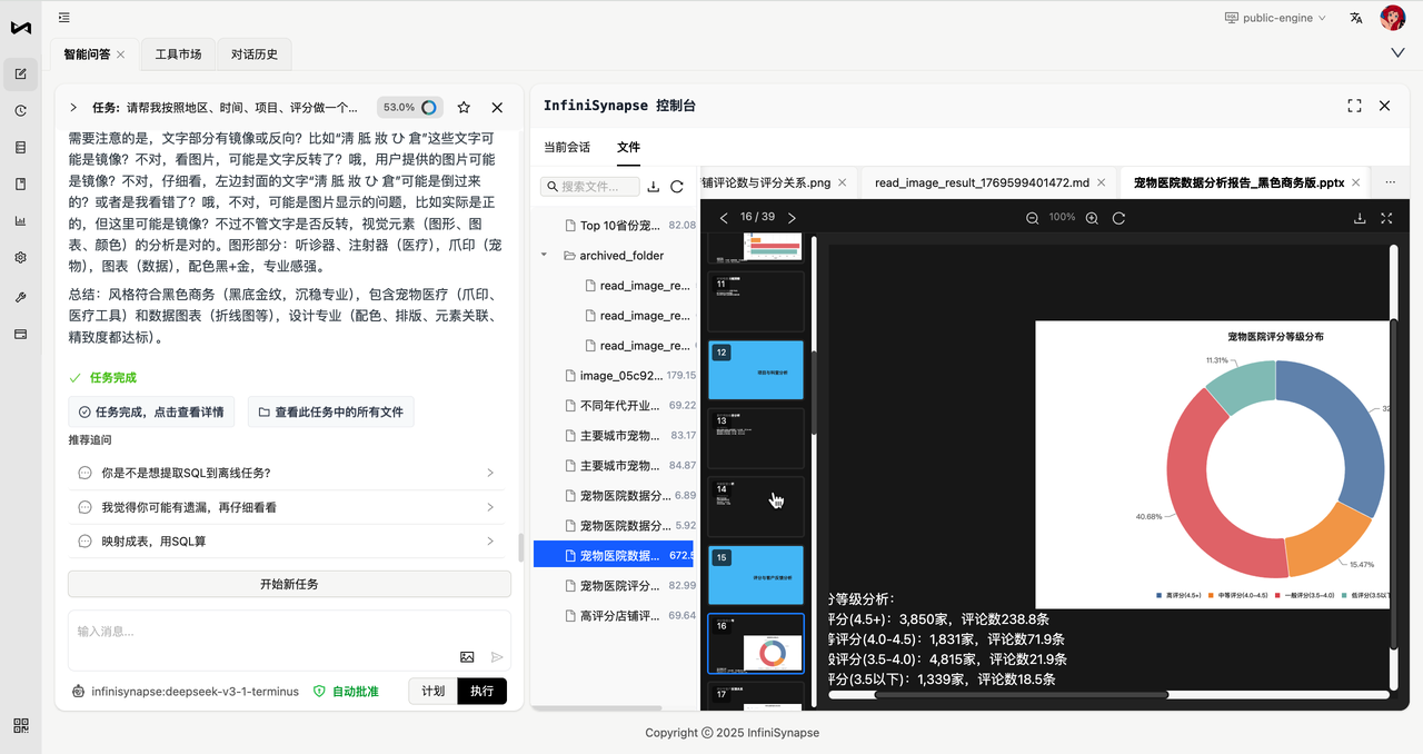 作为平台运营或数据分析师,当你面对老板甩来的一份包含数万条数据的 Excel,要求你在短时间内完成分析报告和汇报 PPT 时,是不是感到压力山大?这项过去可能需要一周才能完成的复杂任务,现在可以放心地交给 InfiniSynapse: