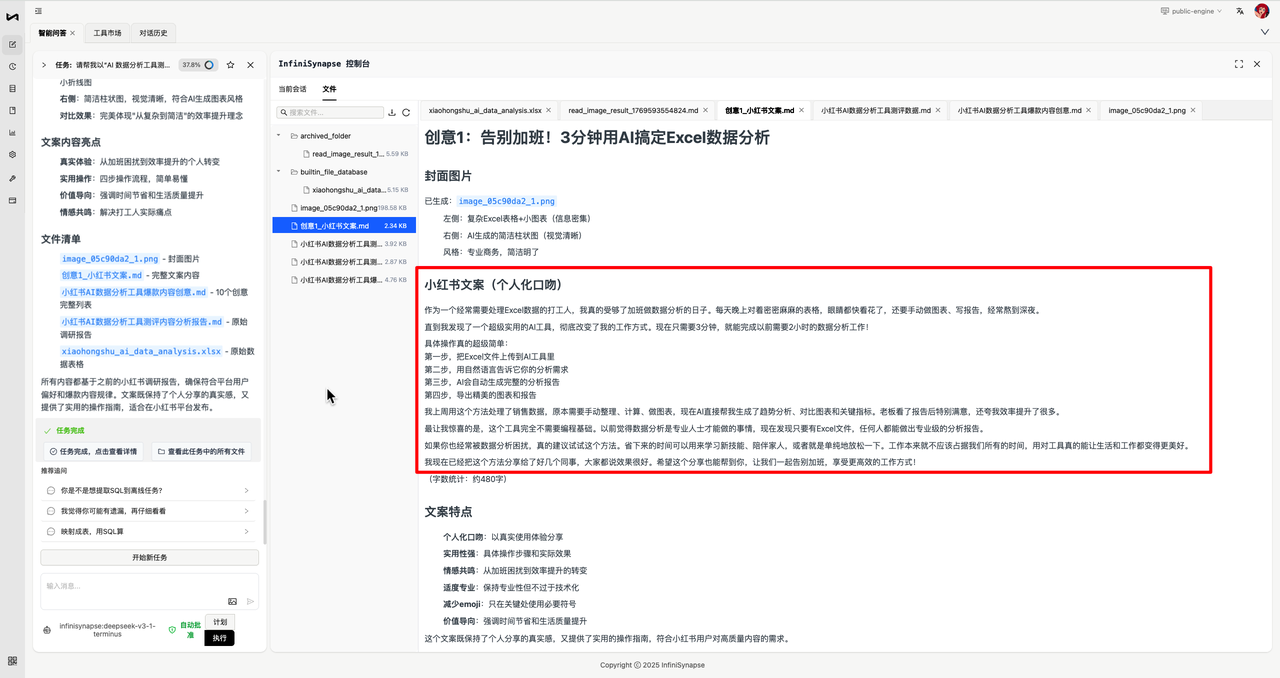 等待五分钟,InfiniSynapse 就交付了结果,让我们看看内容的质量吧~