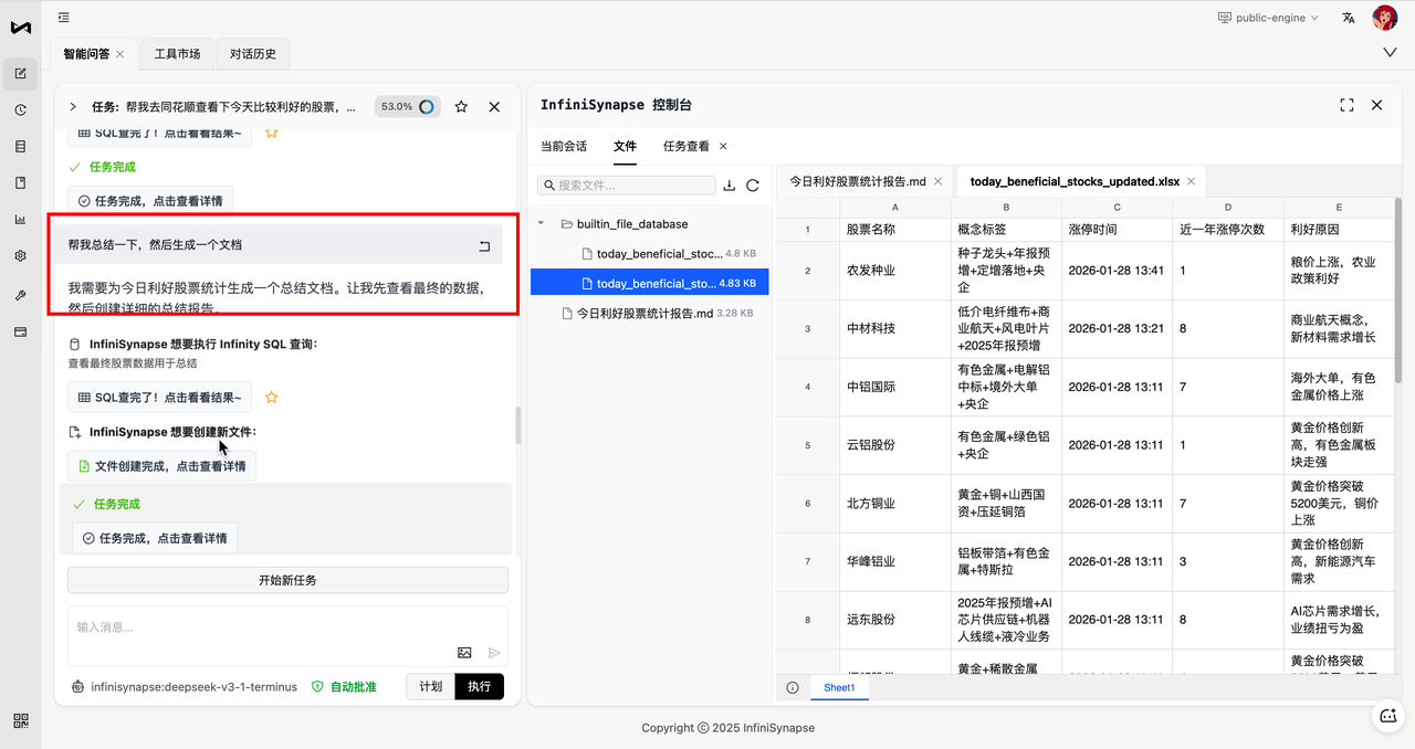 作为一名金融分析师,每天从海量信息中筛选有价值的股票数据,再整理成报告,是不是耗费了你大量时间?现在,你可以把这项工作交给 InfiniSynapse: