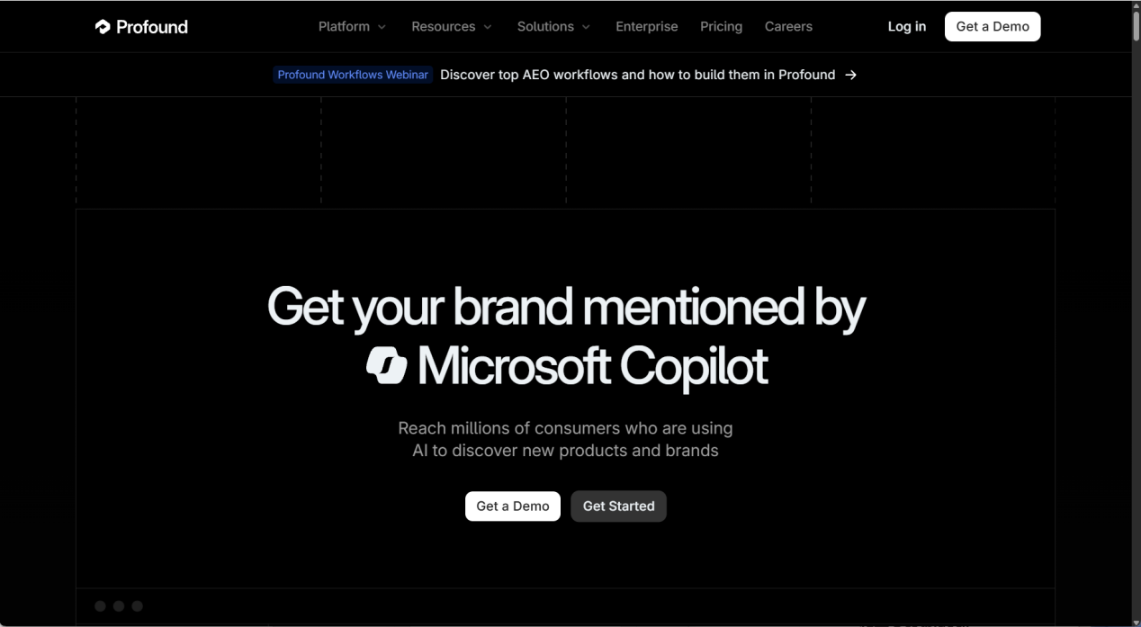 Profound更聚焦引用与缺口:哪些页面常被引用、哪些问题你没有可复述答案、哪些主题覆盖不足。它适合团队想用更轻量的方式启动项目:先补最影响转化的那批问题,先跑出闭环样板,再扩展到长尾。