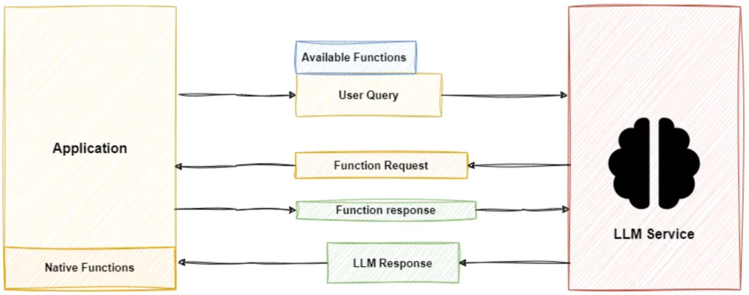 1)传统方式写好API代码接口,让模型解析出代码接口所需要的参数,然后调用接口拿到结果。比如:写了一个机票查询的接口。用户说:我要买一张北京到上海的机票,让模型提取文中上海、北京两个地址,才能调用接口拿到结果。但是如果直接说:我要买一张到上海的机票,这个时候API接口就无法调用,可见这种方法维护性和扩展性都很差。