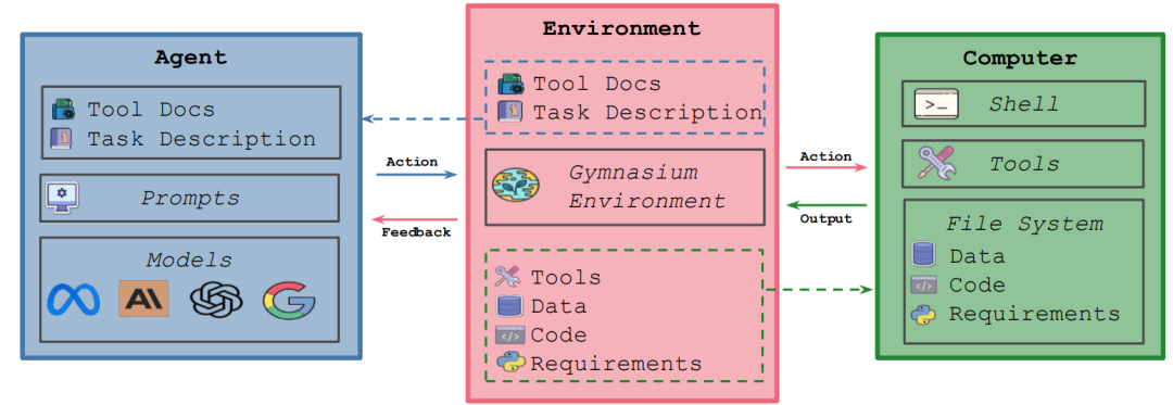 MLGym 是首个针对机器学习(ML)任务的 Gym 环境,旨在促进强化学习(RL)算法在训练此类 Agent 方面的研究。MLGym-bench 基准包含 13 个来自计算机视觉、自然语言处理、强化学习和博弈论等不同领域的开放式 AI 研究任务,为评估和提升 AI 研究 Agent 提供了全面的平台。