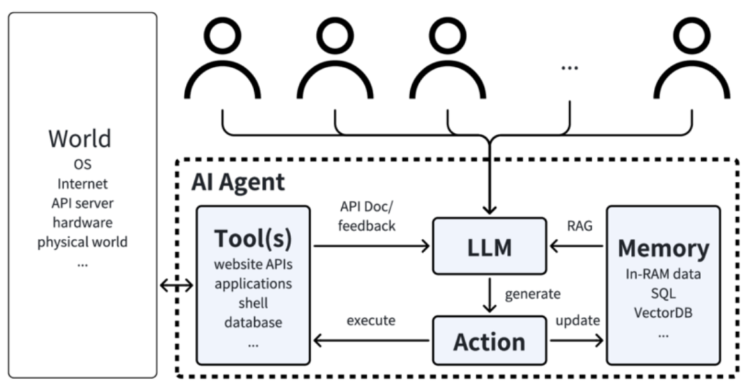 随着LLM技术的发展,生成式 AI 模型也具备了自我思考的能力,也可以通过工具访问实时信息并执行现实世界的任务。这种结合推理、逻辑和外部信息访问能力的 AI 体系被称为Agent(智能代理),其能力超越了单一 AI 模型的独立运作模式。