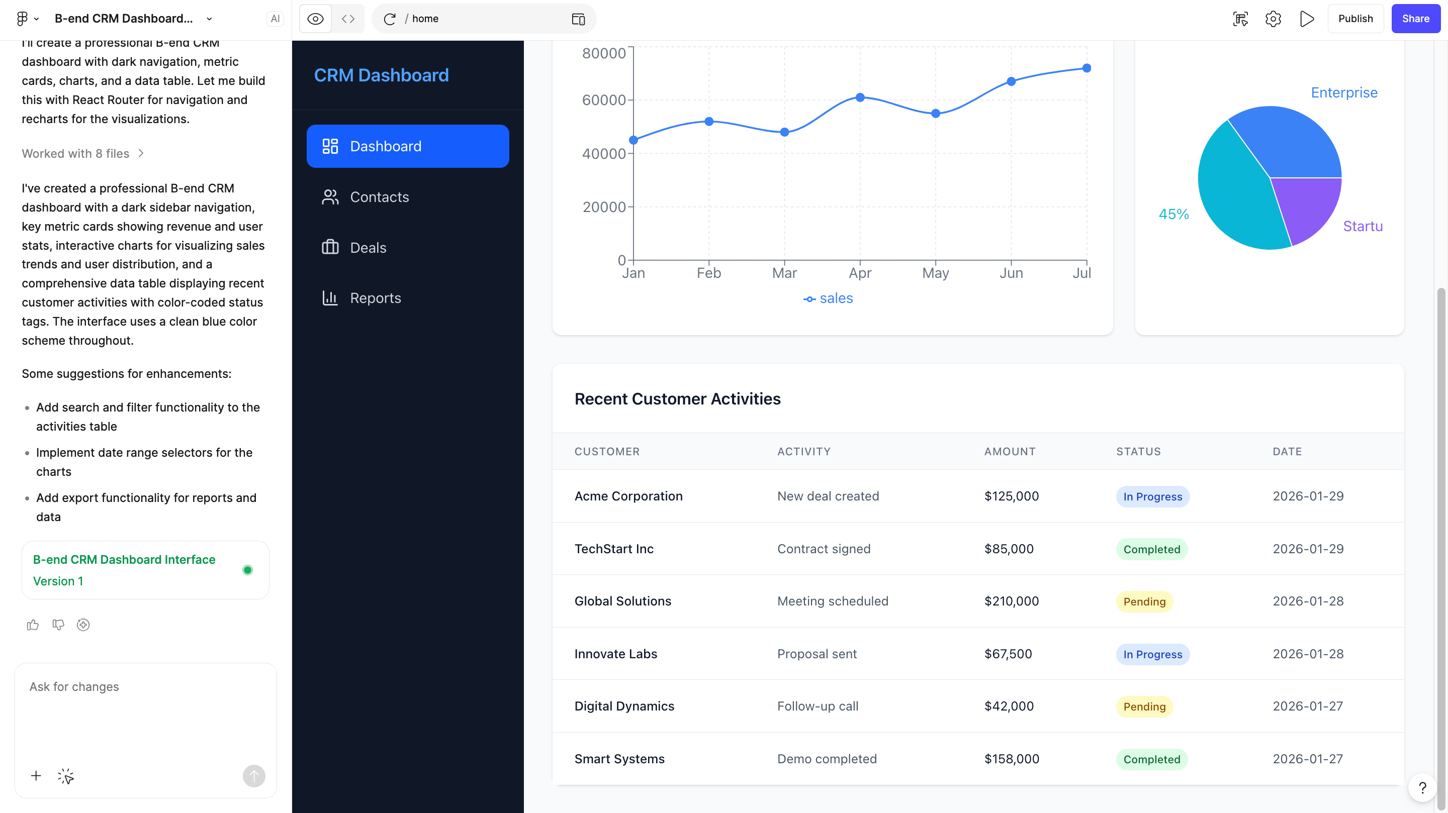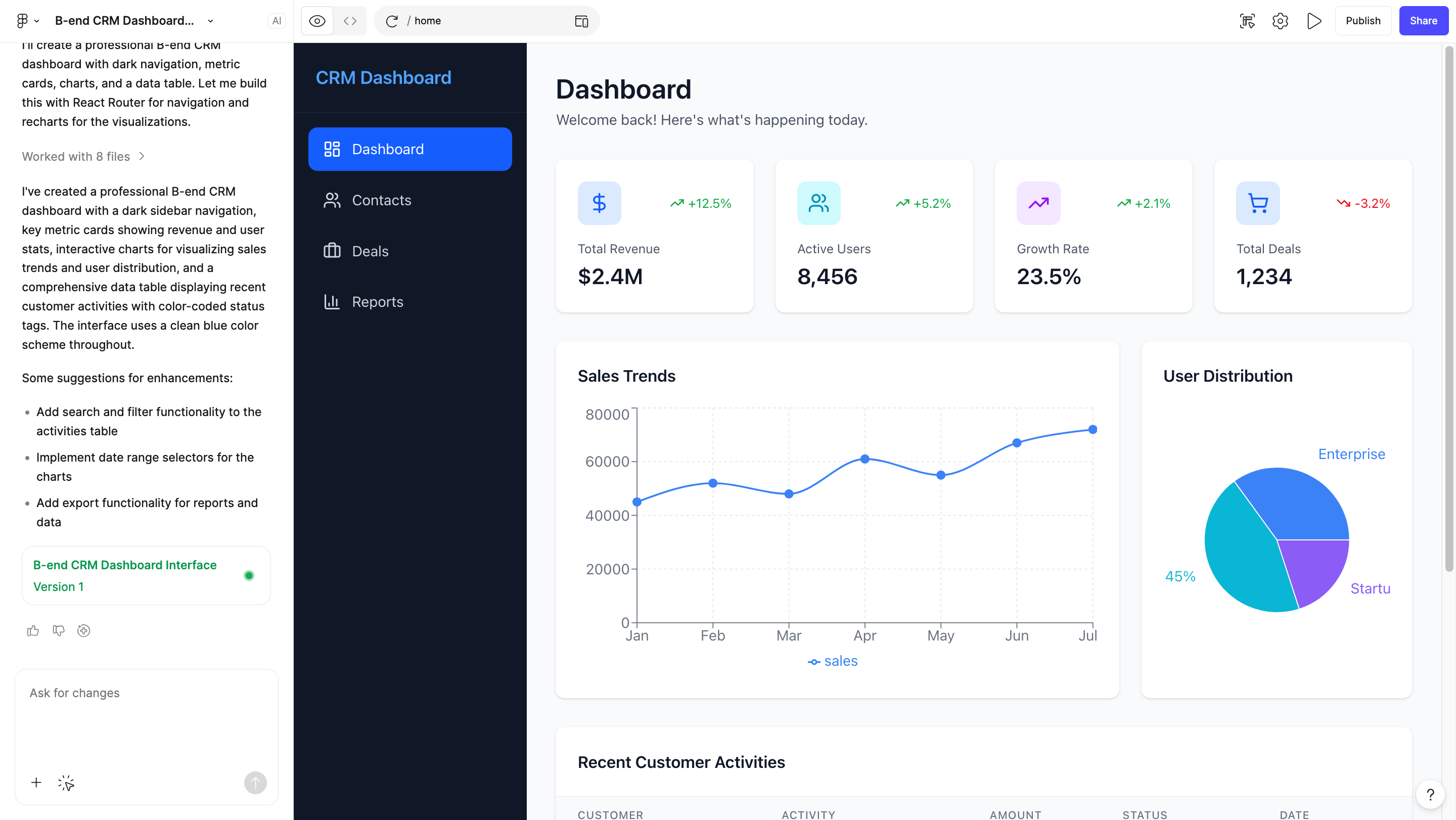 做B端管理后台,借助AI生成产品原型的功能把基础框架打好,后面就会很省劲。这里用FigmaMake生成一个CRM后台,测试一下生成效果。