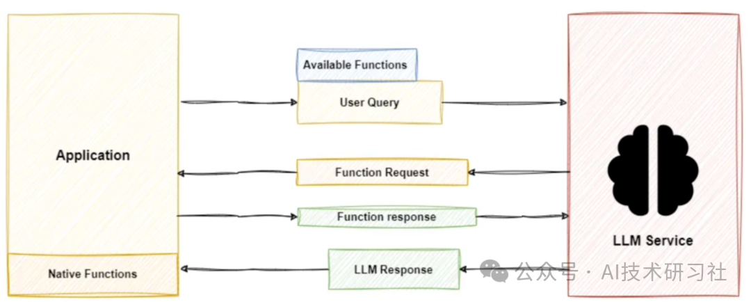 1)传统方式写好API代码接口,让模型解析出代码接口所需要的参数,然后调用接口拿到结果。比如:写了一个机票查询的接口。用户说:我要买一张北京到上海的机票,让模型提取文中上海、北京两个地址,才能调用接口拿到结果。但是如果直接说:我要买一张到上海的机票,这个时候API接口就无法调用,可见这种方法维护性和扩展性都很差。