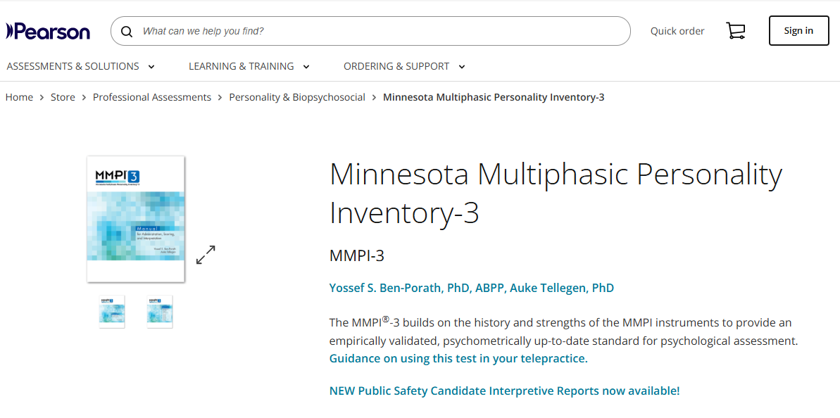 3、临床标准化心理测评系统:Minnesota(MMPI-3)