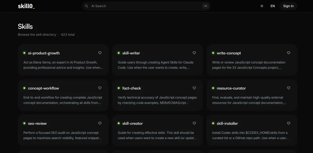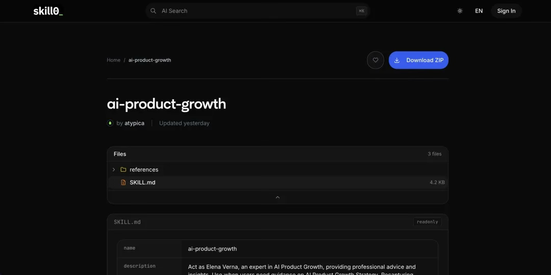 最近看到的特赞科技 atypica.AI 发了一个skill0( http://skill0.io/),正是围绕这一问题给出的一个具体实践: