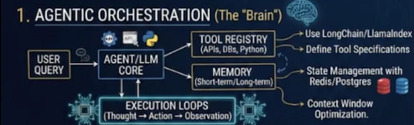 大规模部署人工智能系统的竞赛揭示了一个残酷的现实:训练有素的模型仅仅是开始。从实验性笔记本到生产系统的过渡,需要跨多个复杂领域进行周密的协调。无论是构建能够自主决策的智能体、能够准确回答问题的检索增强生成(RAG)系统,还是能够可靠扩展的基础设施,架构都至关重要。这是探讨构建企业级智能体人工智能系统综合框架的两篇系列文章的第一篇。我们将深入探讨四个协同运作的关键支柱:智能体编排(大脑)、高级 RA