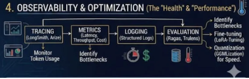 大脑决定行动方案——它协调代理、管理工具、维护上下文并执行推理循环。知识引擎确保决策基于充分的信息——它在决策时摄取、处理和检索相关信息。身体和规模保障一切运行——基础设施、容器、服务层和模型托管能够可靠地处理并发请求。健康和性能保障一切正常运行——可观测性、监控和持续优化。