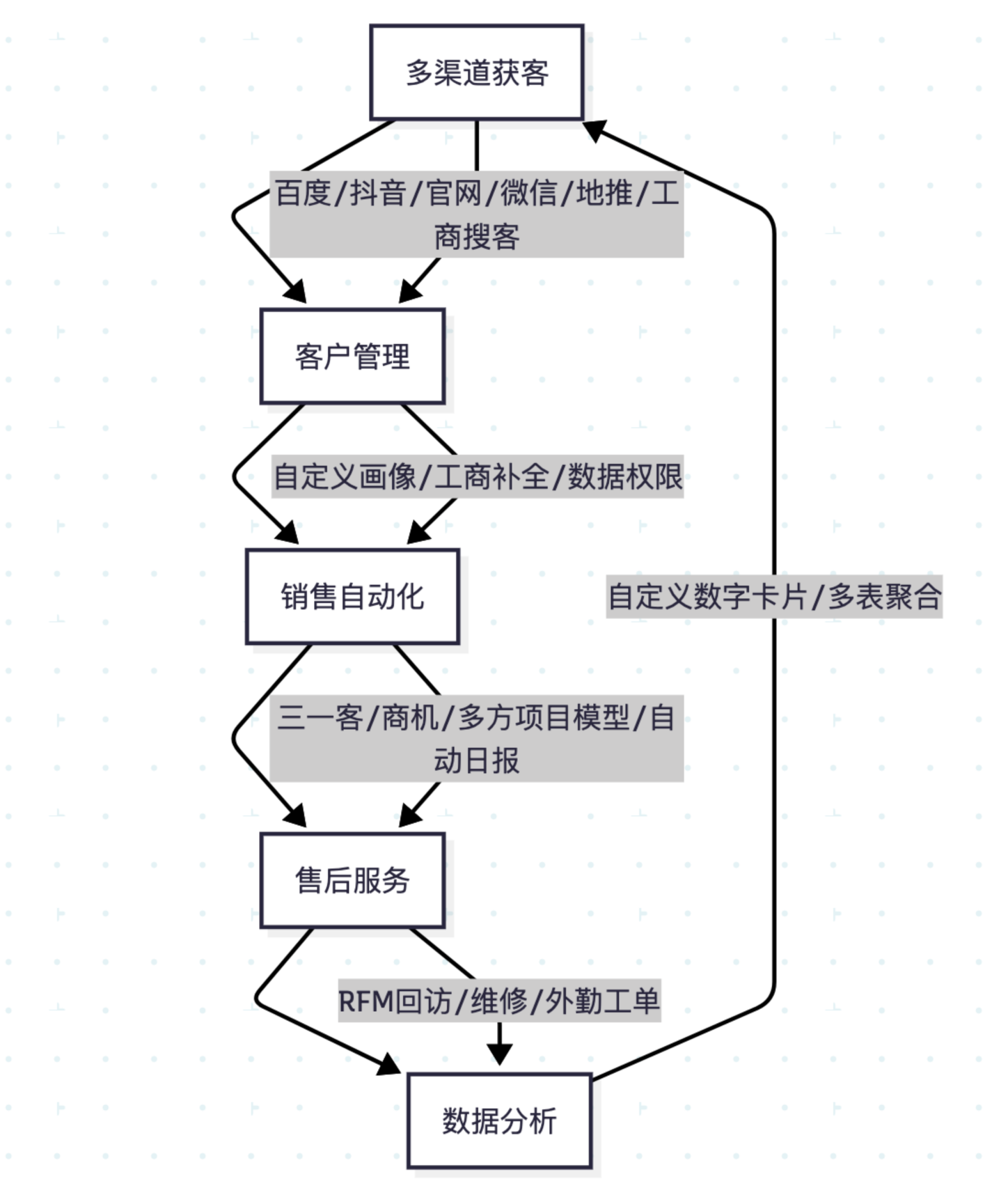 “线索-机会-合同-订单-收款”全流程/智能客服/采购-销售协同 |