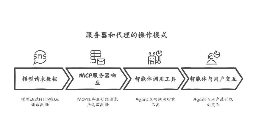 MCP Server采用被动服务模式,仅在接收到请求时返回数据。例如,当模型需要抓取网页内容时,会通过HTTP/SSE协议发送请求,MCP Server抓取数据后返回。