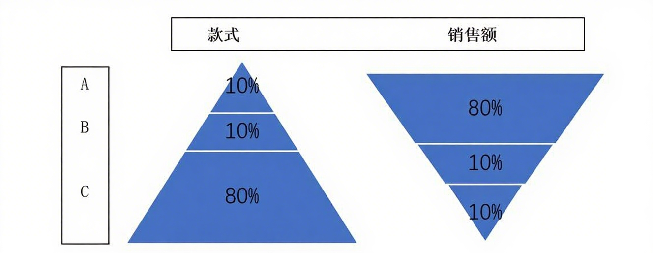 你的商品中,是不是20%的SKU贡献了80%的销售额?ABC分析模型,又称帕累托分析,其核心思想就是“抓重点”。它根据商品对销售额的贡献度,将商品分为三类: