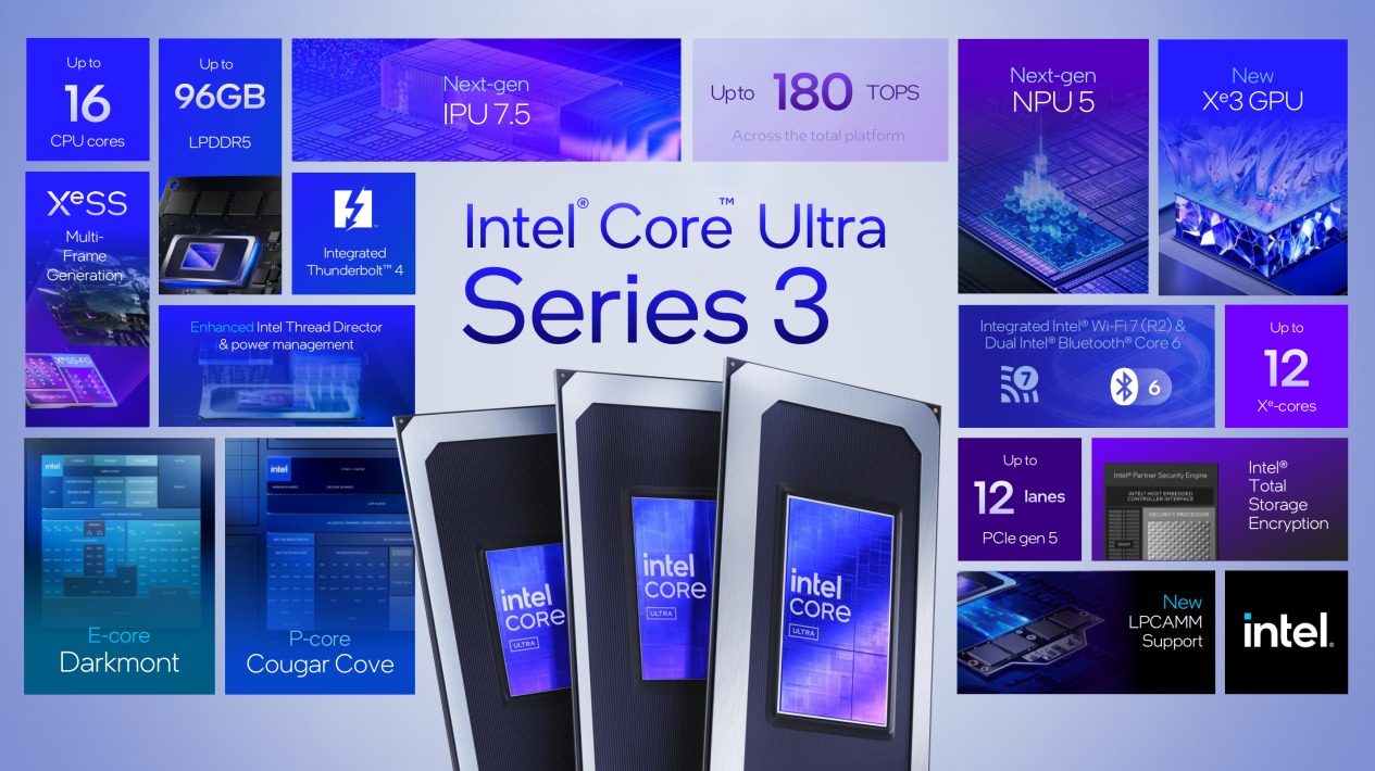 总结一下,Panther Lake是一次全方位的升级提升,工艺制程、CPU、GPU、IPU、NPU均为全新打造,还有CPU内存侧缓存、更大的iGPU L2缓存等新设计,呢吗这将带来怎样的体验呢?我们接下来就通过直观的测试来一探究竟。