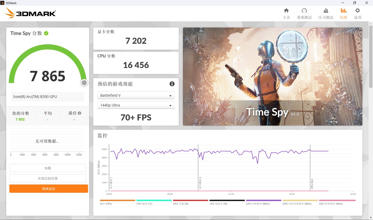 以代表DX12的Time Spy项目为例,Arc B390核显的理论性能已经超越了桌面端RTX 3050 8GB版本的6400+,与桌面端RTX 3060 8GB版本分数持平,作为一颗核显其性能已着实恐怖。