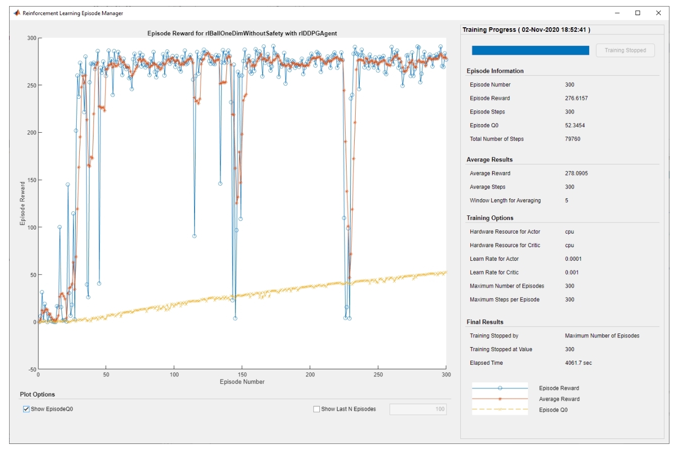trainResultsWithoutConstraint = train(agent, env, trainOpts);