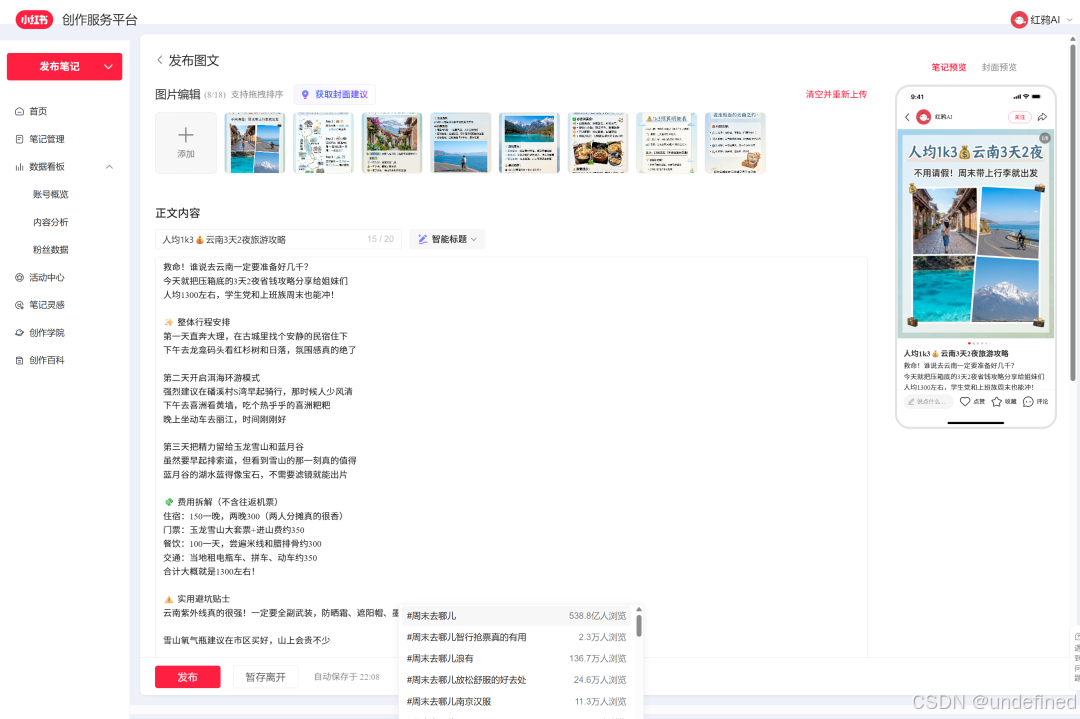 •第四步:一键多端发布 支持手机端和浏览器预览,整篇笔记从创意到成型也就几分钟。对于商家图文带货来说,这简直是解放双手的神器。