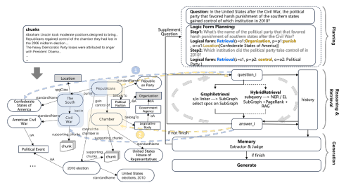- 充分利用 LLMFriSPG 的层级化表示,在符号化图结构的引导下检索事实性知识与文本文档知识;