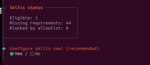 配置好telegram后,进入skill技能配置。