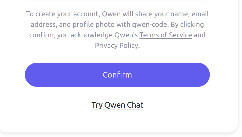 继续按enter, 会弹出千问平台的确认界面,可能你需要登录千问网站https://chat.qwen.ai,