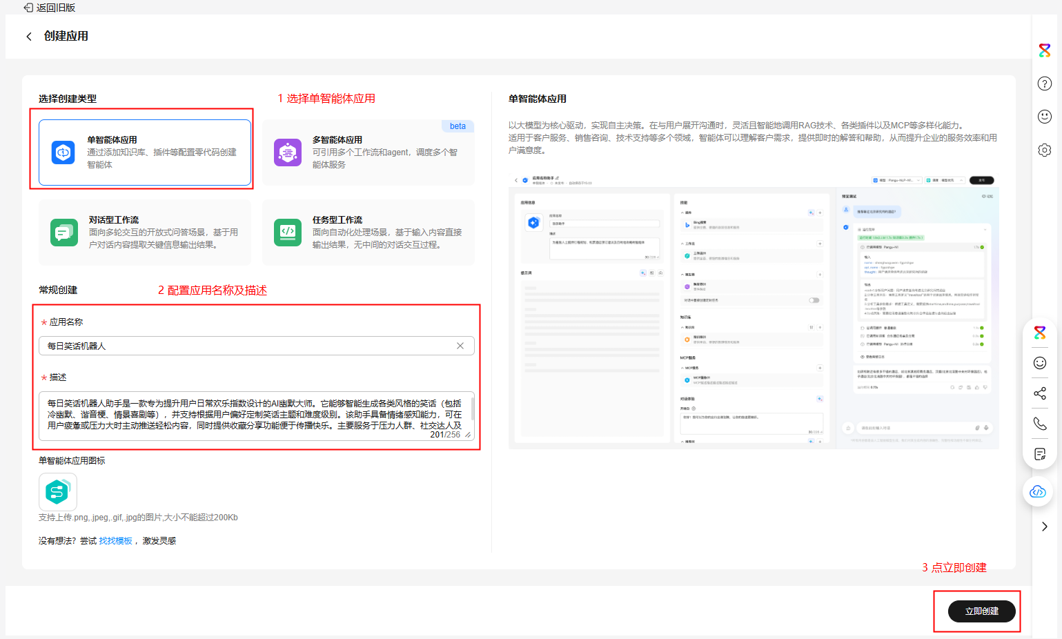 - 领取福利开通商用模型服务token,配置创建Versatile Agent每日笑话机器人应用;