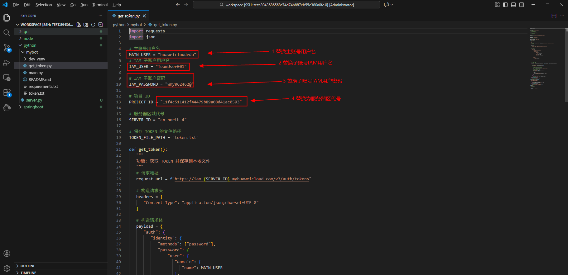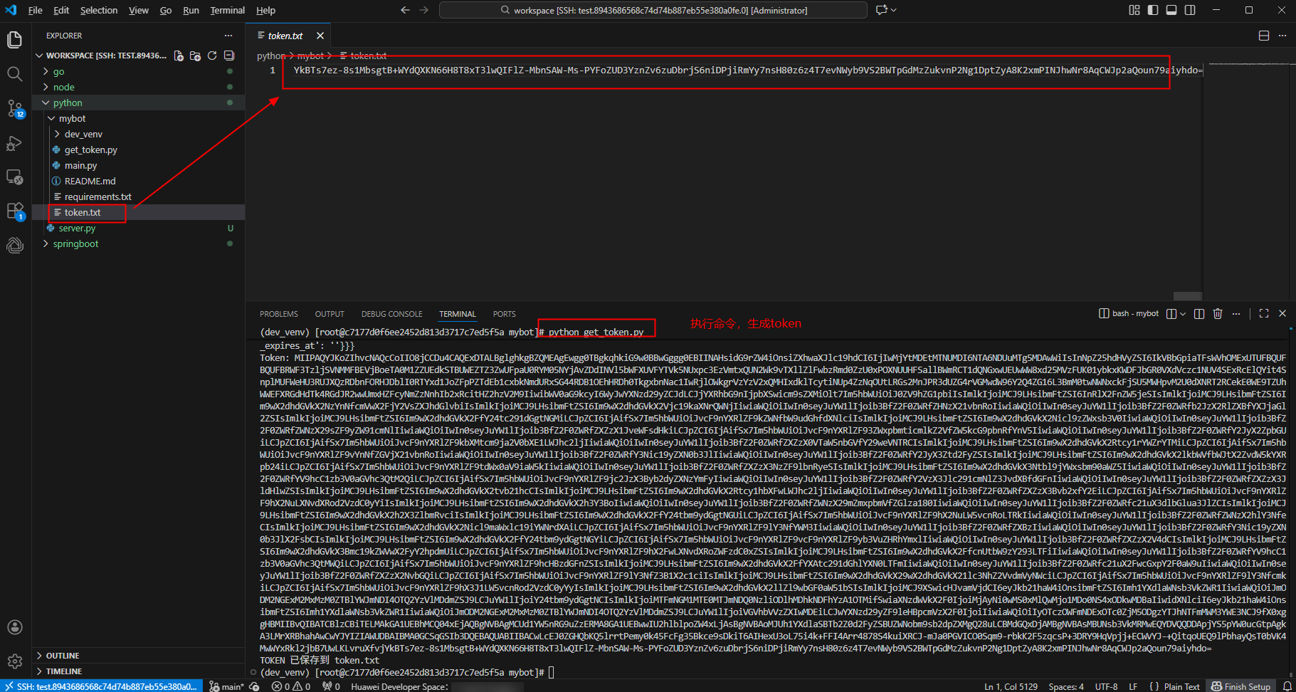 完成上述配置后,在VS Code命令行中输入如下指令,get_token.py自动生成token并被保存在token.txt文件中。