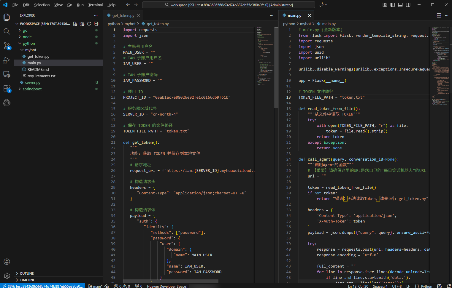 注意:华为账号不支持直接获取账号Token,华为账号获取Token需创建一个IAM用户并授予该用户必要的权限,使用创建的IAM用户名和密码,获取IAM用户Token。IAM用户名和密码,我们已经在“2.2 获取IAM用户信息”中获取。