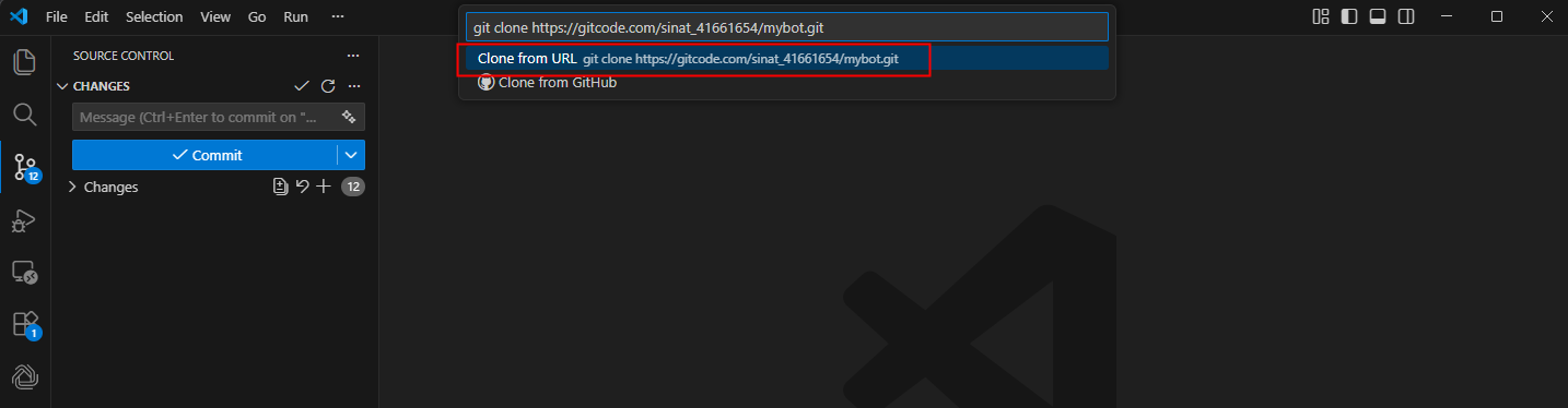 输入代码仓地址,Clone from URL:https://gitcode.com/sinat_41661654/mybot.git