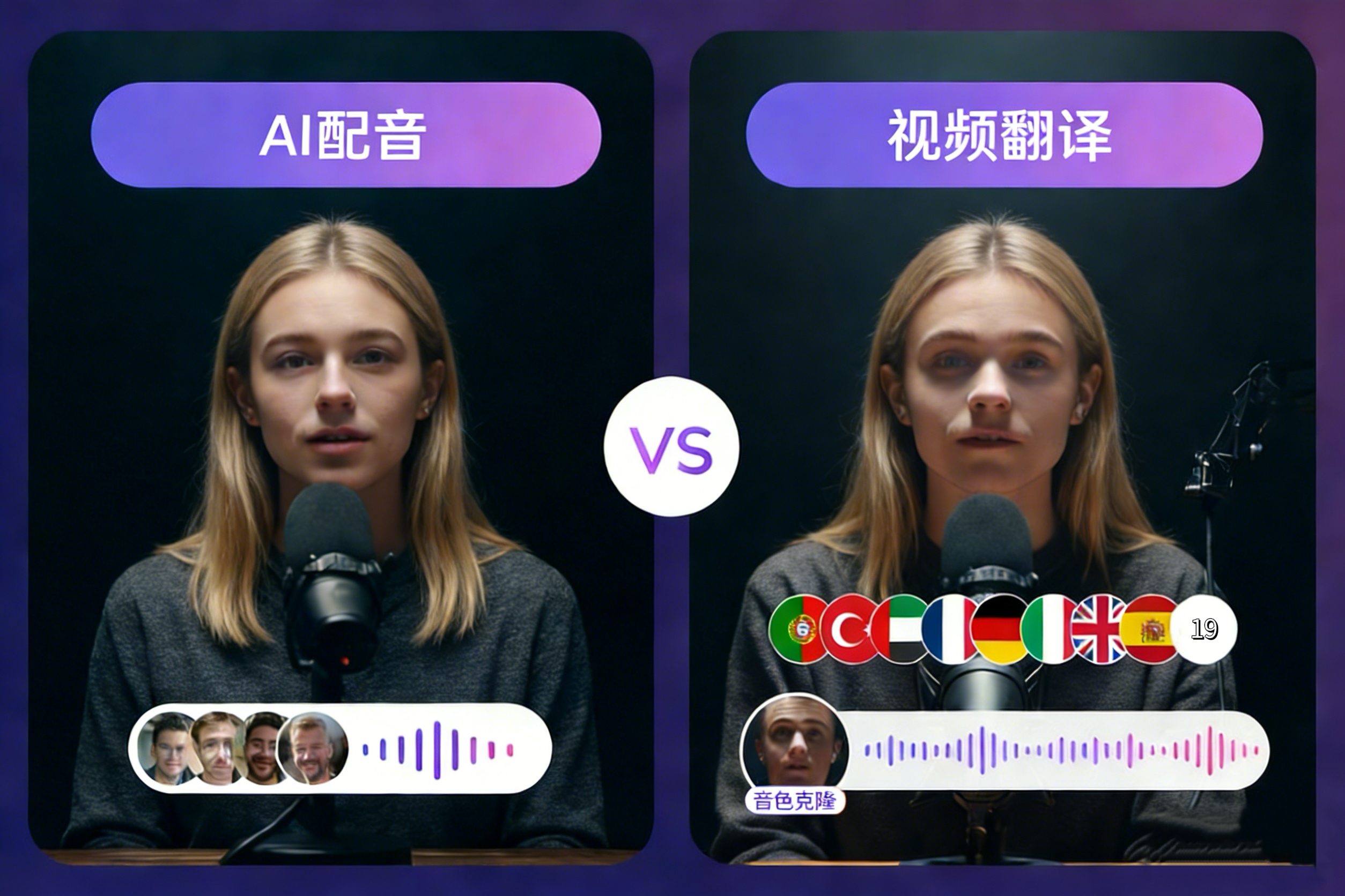 以下为你梳理AI配音与视频翻译的核心差异及共性,帮你快速做出判断: