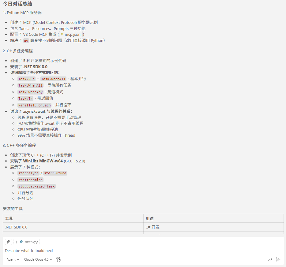 这一体验来自 GitHub Copilot Chat + Agent Claude Opus 4.5 的组合。