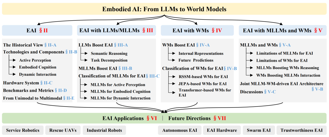本文将系统梳理具身AI的发展脉络、核心技术与组件,深入解析LLMs/多模态(MLLMs)和WMs的赋能机制,提出二者融合的联合架构,并探讨其在服务机器人、救援无人机等领域的应用及未来研究方向,为读者呈现这一前沿领域的全景图景。