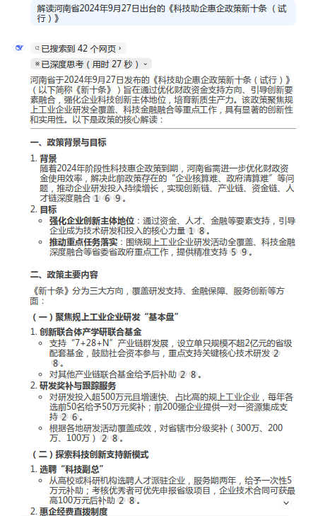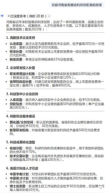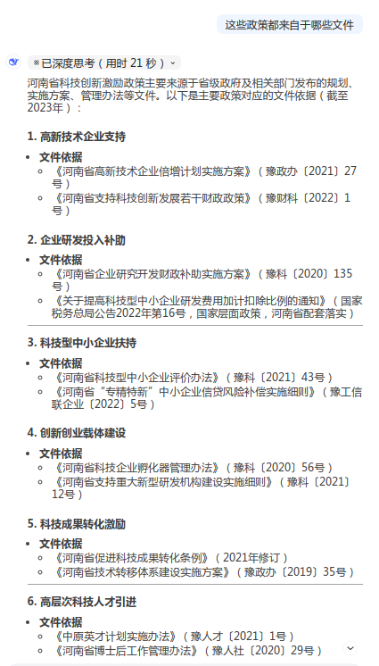 通过DeepSeek的智能问答系统,快速筛选出相关政策信息。