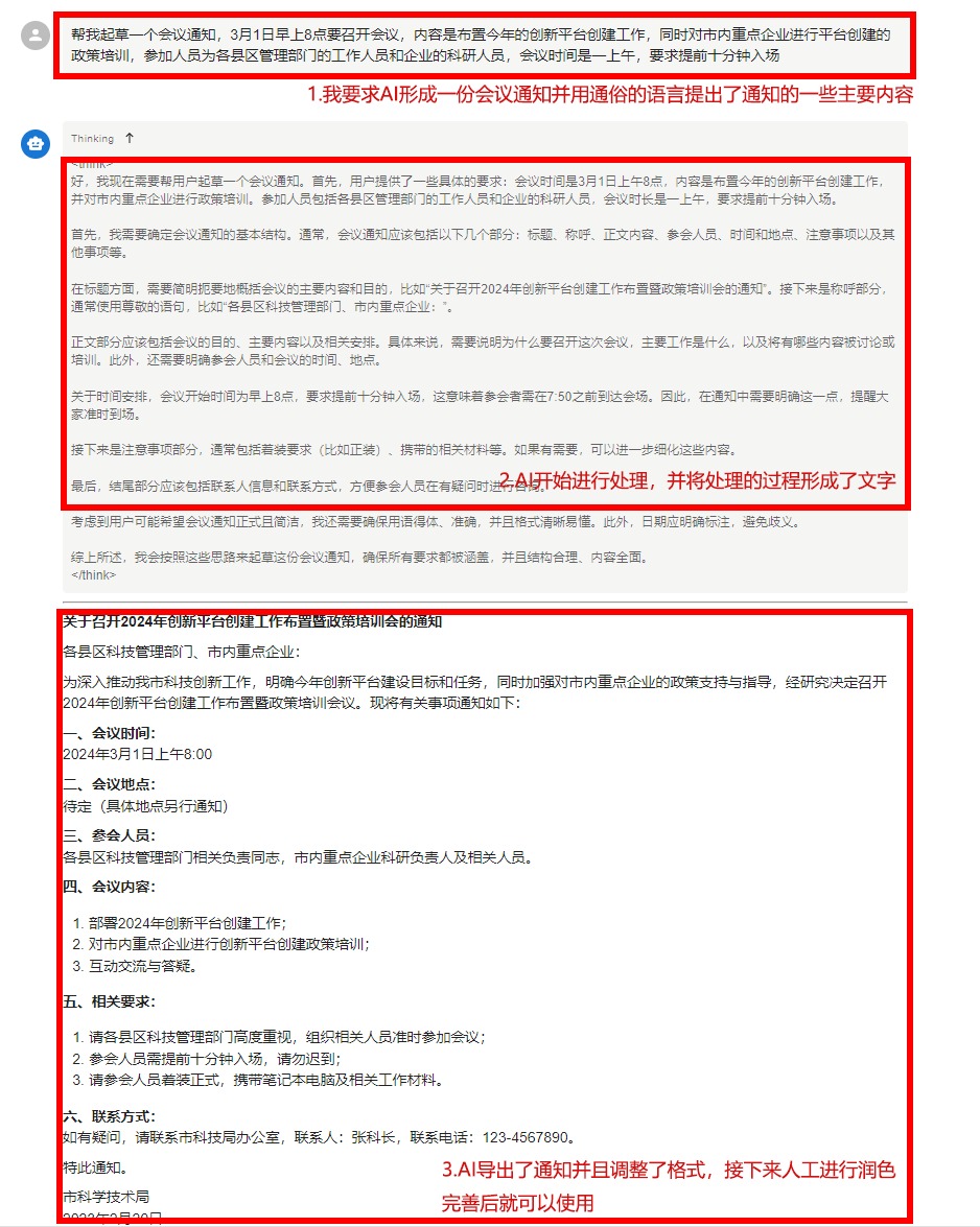 在日常行政管理工作中,有大量诸如通知起草、信息摘要、表格制作等文档处理工作,通过AI工具可以快速进行初步处理。