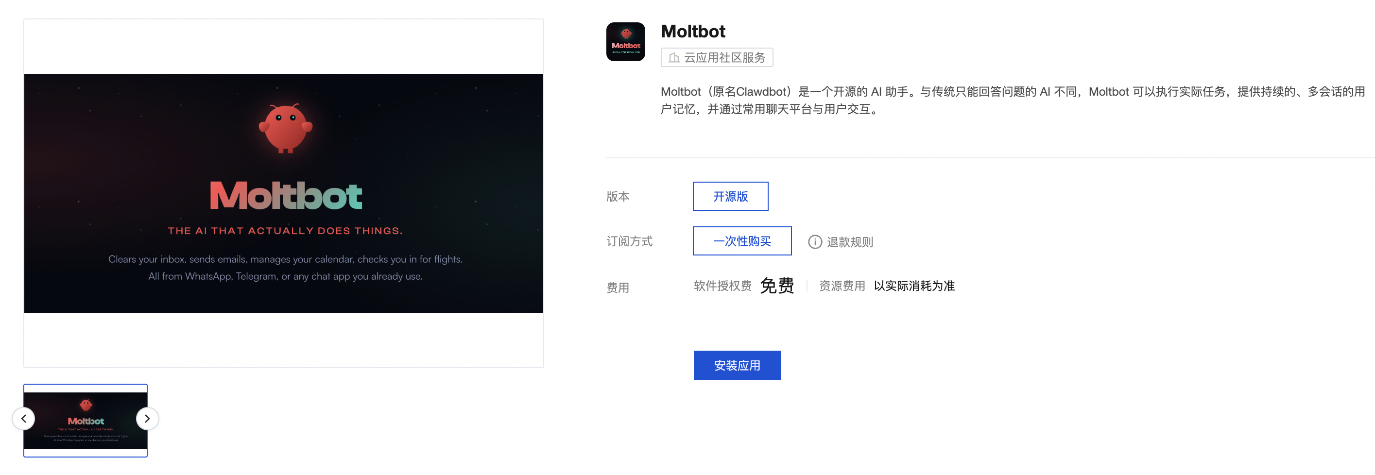 通过云应用部署 Moltbot ,Moltbot 依赖的云资源费用将根据实际配置产生的消耗来收取。