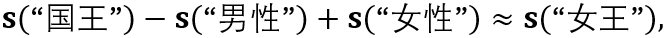 人们用向量来建模语义的想法最早出现于 Luhn 在 1953 年发表的论文中[8]。但直到 2013 年,Mikolov 等人才真正取得突破[9][10]。基于大量语料,他们成功地训练出了将 Token 转化成语义向量的神经网络模型。下面这个例子经常被用来表达最理想的语义向量化: