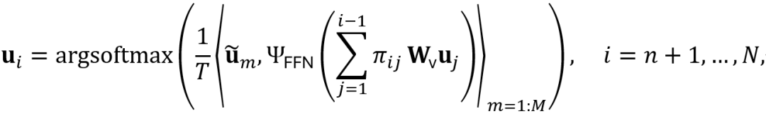 简单起见,这里将采样操作表示成 argsoftmax (⋅) 函数。令