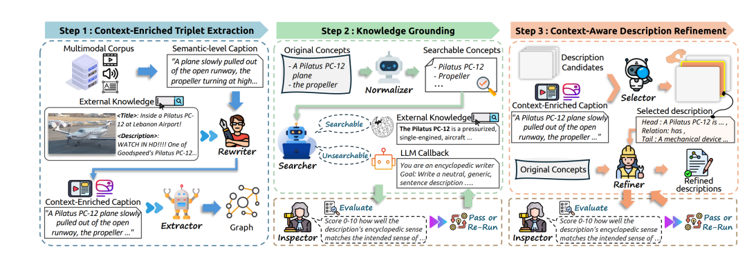 把平淡的 caption 改写成“知识密集型”文本,再抽三元组。 - Knowledge Grounding