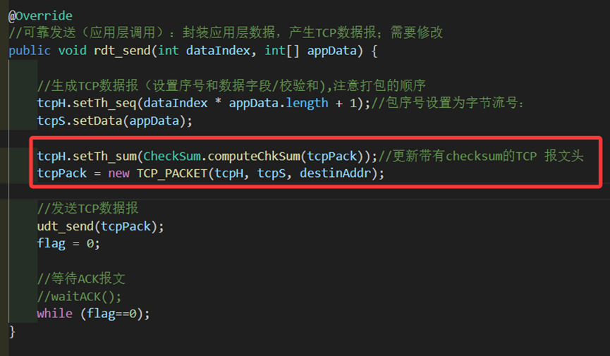 图 6 rdt_send中校验和的实现