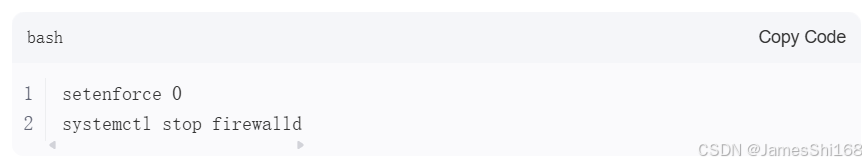 sudo或切换为 root 用户操作 - 临时关闭 SELinux 和防火墙测试: