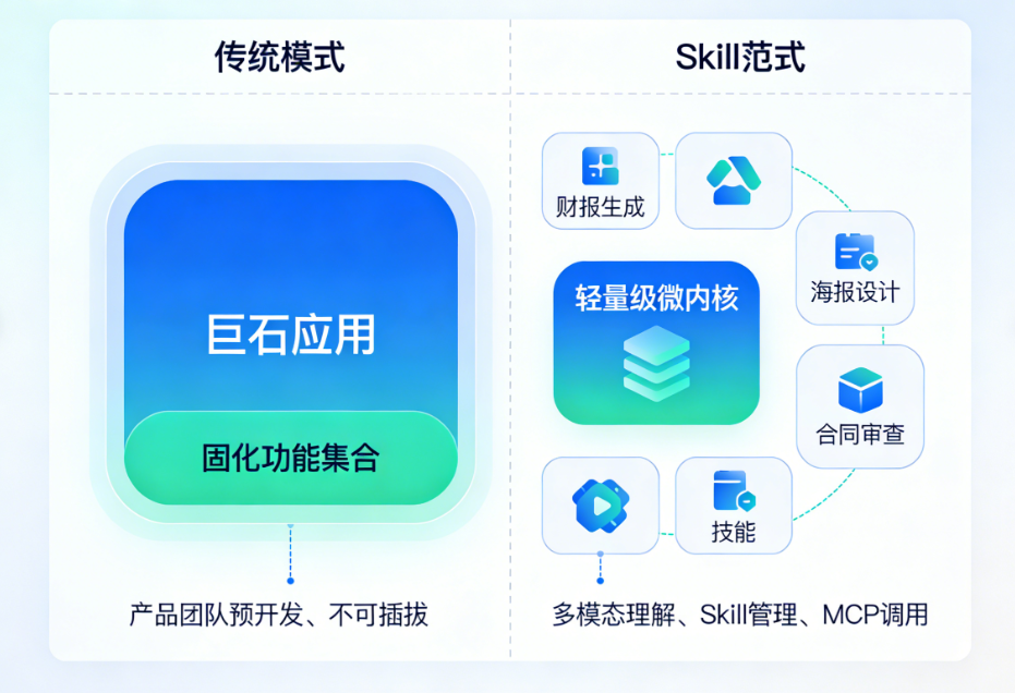 产品内核重构:从“巨石应用”到“微内核+技能生态”